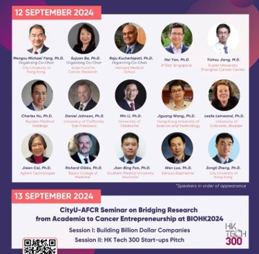 - The “AFCR-CityU Innovation Series in Biomedicine” forum invites globally renowned scholars and entrepreneurs in biomedicine to discuss advancements in cancer research, innovation, and commercialization, while also enhancing public awareness of cancer prevention, diagnosis, and treatment.