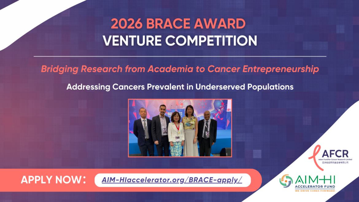The Asian Fund for Cancer Research (AFCR) is proud to present the BRACE Award, Bridging Research from Academia to Cancer Entrepreneurship. The BRACE Award aims to provide vital support to early-stage biotechs, enabling them to accelerate their innovative therapeutics, diagnostics and…