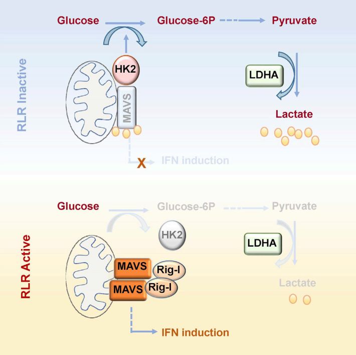 研究人員在293細胞系中發現,只有葡萄糖的無氧代謝才會抑制1型乾擾素的產生。而且,伴隨著1型乾擾素的產生被抑制,無氧代謝的產物——乳酸,水平也會升高。