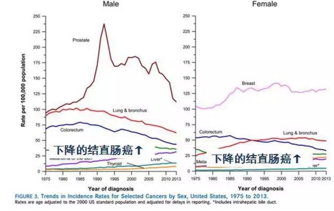這條看似不溫不火的曲線卻有一長串的故事。近40年間,結直腸癌發病率以每年3%的速度穩步下降。主要原因就在於篩查的普及。