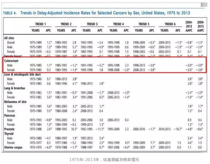 從圖中,我們可以發現一條“男女通吃”穩步下降的曲線 – 結直腸癌發病率。