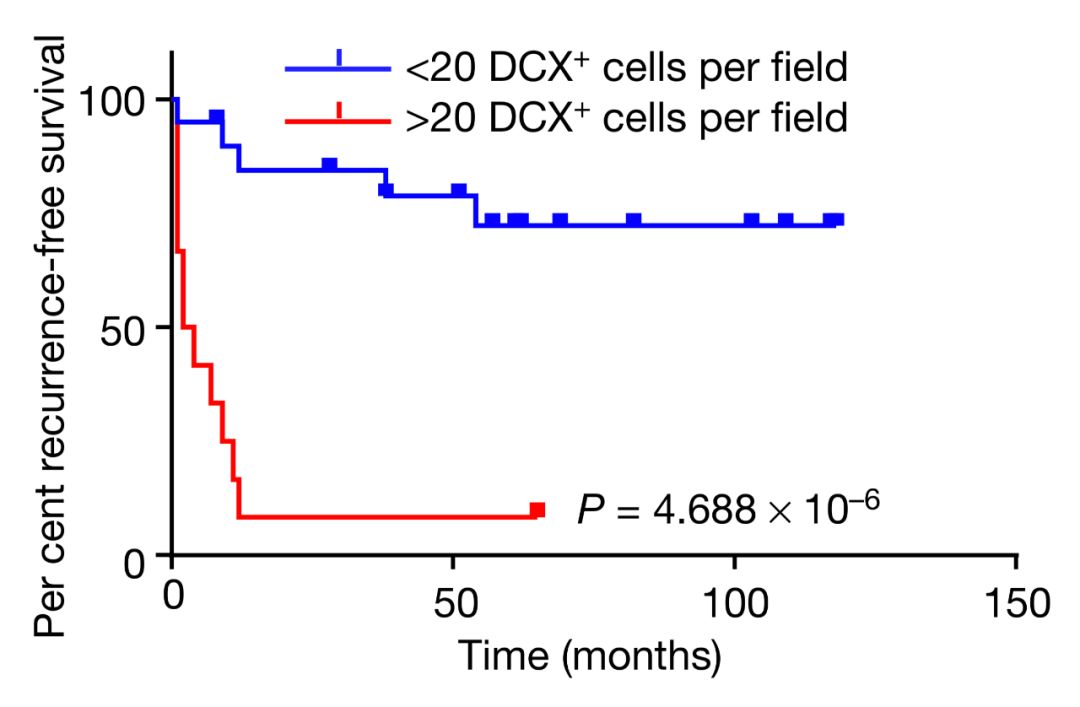 緊接著,Magnon教授發現表達雙皮質素細胞的數量與患者疾病的嚴重程度呈顯著的正相關。“這一令人驚訝的發現表明,成人腦外存在表達雙皮質素的神經乾細胞,而且它們很好地參與了腫瘤中新神經元的形成,”Magnon教授表示。