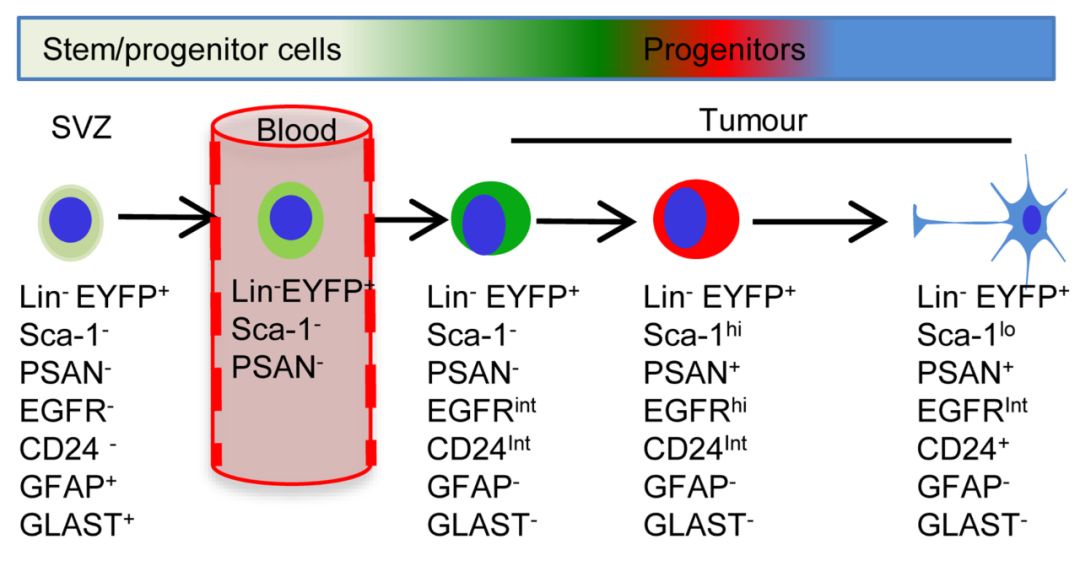不過這顯然不足以證明腫瘤內的神經乾細胞就是腦室下區消失的那些。