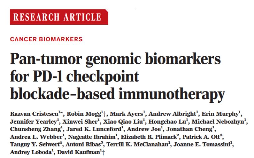 3:Pan-tumor genomicbiomarkers for PD-1 checkpoint blockade–based immunotherapy. Science 362, 197(2018)