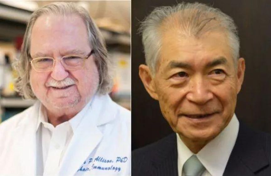 2018 年諾貝爾醫學及生理學獎獲獎者:詹姆斯·艾利森(左)和本庶佑(右)