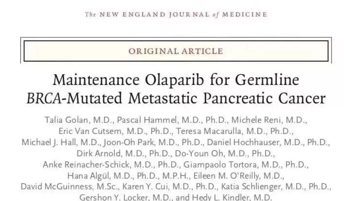 7:Maintenance Olaparib for Germline BRCA-Mutated Metastatic Pancreatic Cancer. New England Journal of Medicine, June 2, 2019 DOI: 10.1056/NEJMoa1903387
